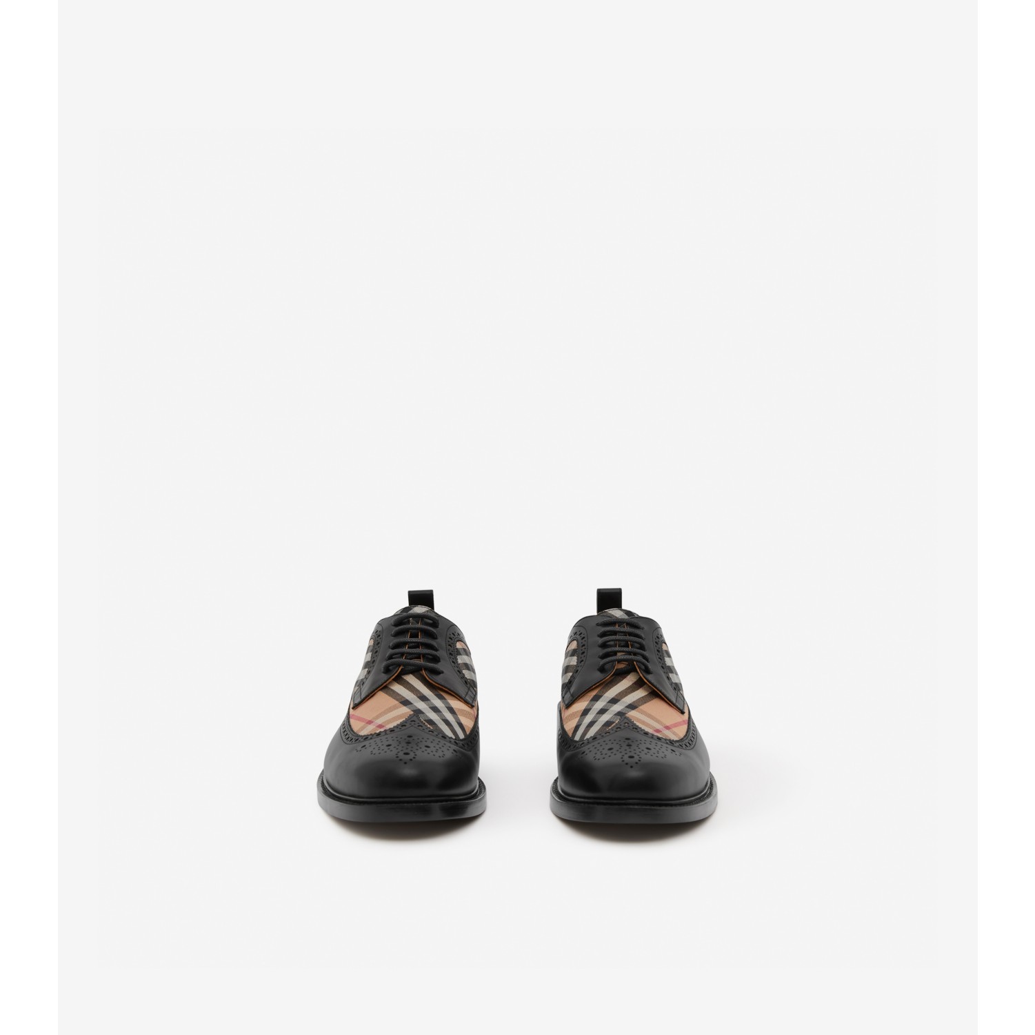 Vintage Check Panel Leather Derby Shoes in Black birch Brown Men