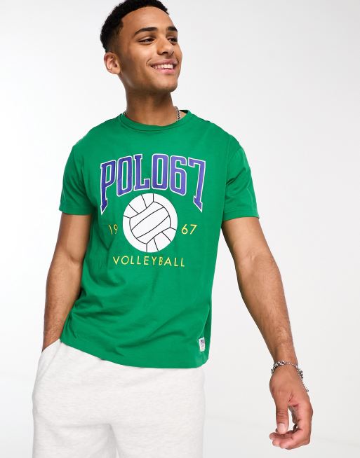 Polo Ralph Lauren retro volleyball logo t shirt classic oversized fit in mid green