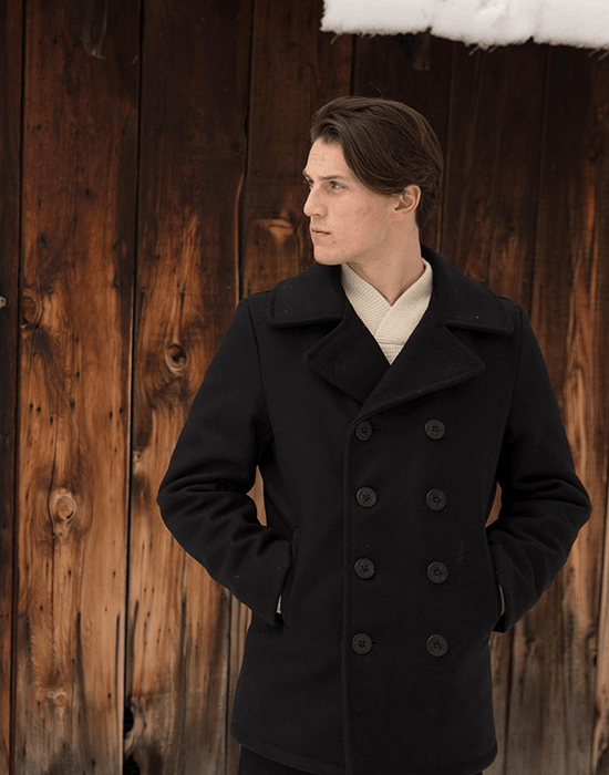 Schott NYC Classic Melton Wool Navy Pea Coat