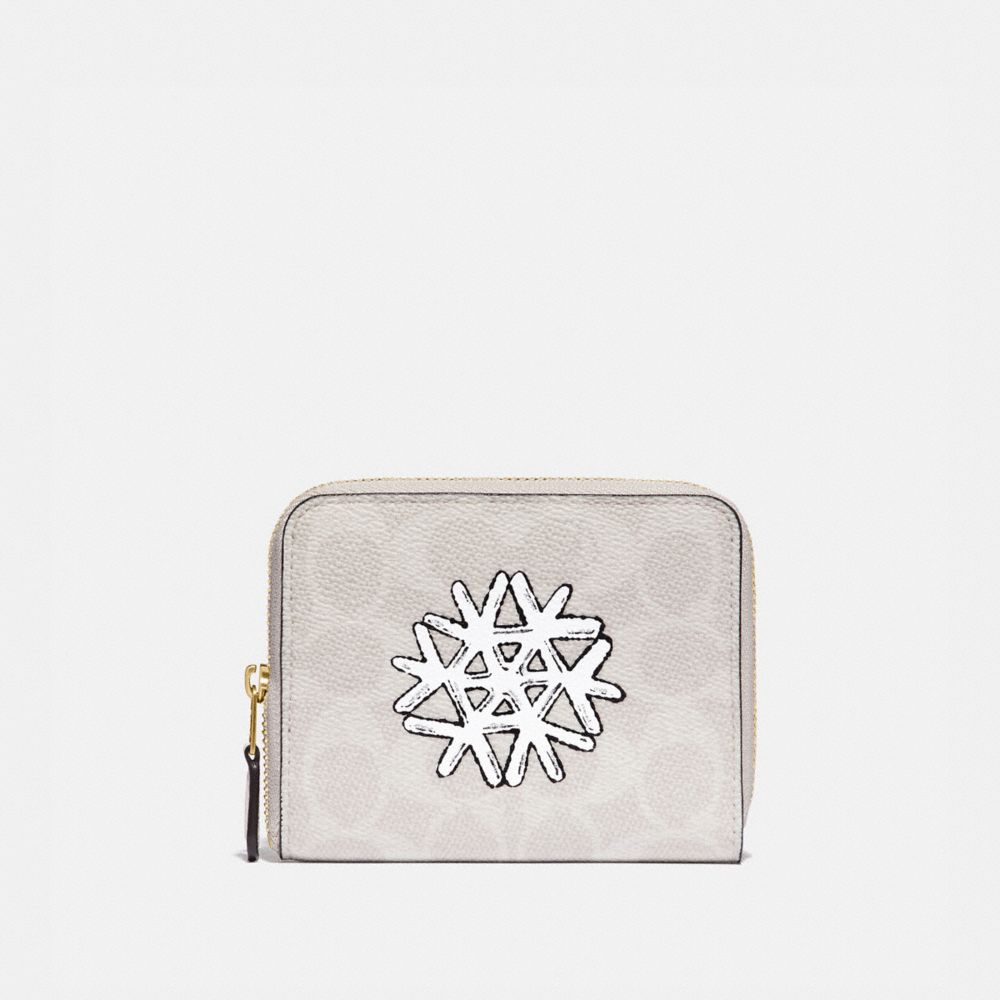 COACH Small Zip Around Wallet In Signature Canvas With Snowflake