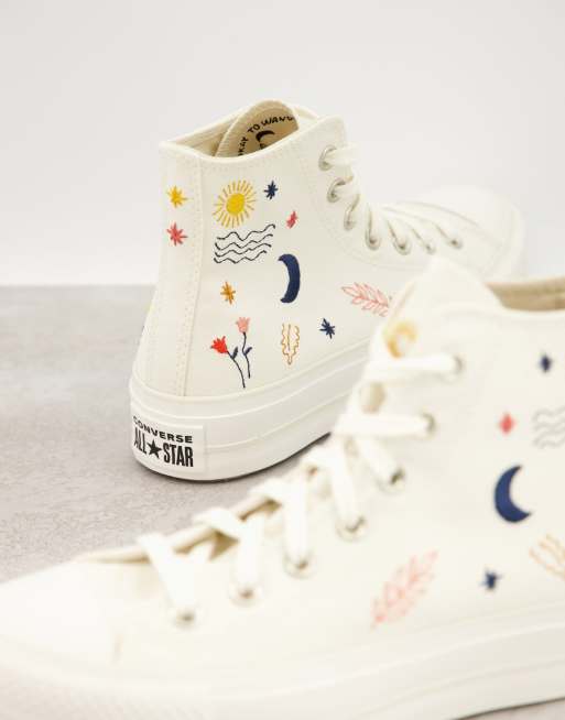 Converse Chuck Taylor All Star Lift Sneakers bianco sporco con ricami