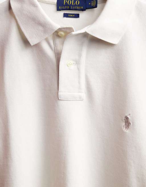 Cream ralph lauren polo shirt new arrivals, Polo Ralph Lauren slim fit polo player logo pique shirt in antique cream new arrivals