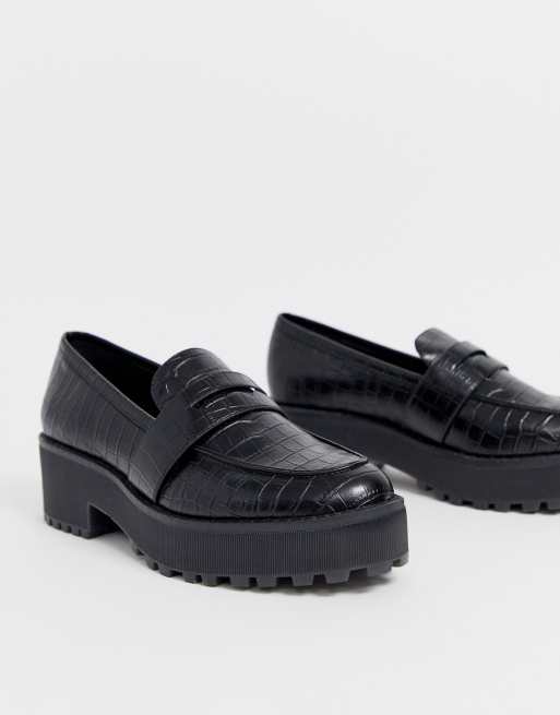Tabitha Black Croc Leather Loafers for Bunions Sole Bliss