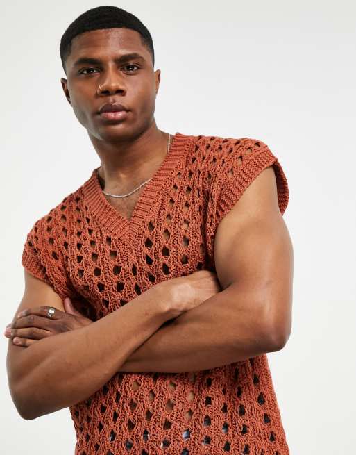 Crochet knit tank top new arrivals, Topman crochet knit tank in brown new arrivals