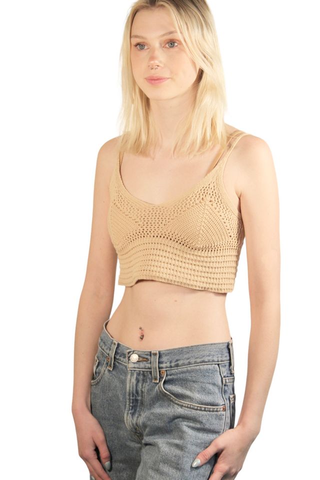 Vintage 1990 s Neutral Tone Crochet Knit Tank Top Selected By