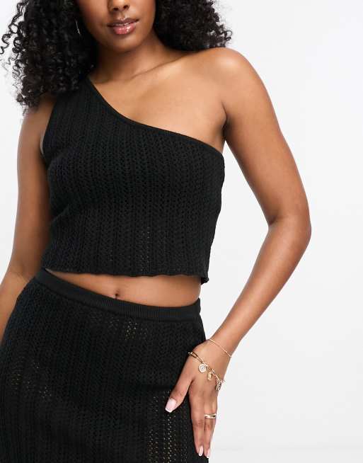 4th Reckless dune crochet one shoulder beach crop top in black part of a set