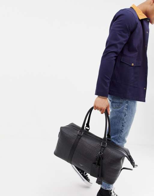 Dune Cullen Faux Croc Holdall in Black