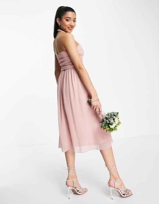 Little Mistress Bridesmaid halter neck midi dress in dusty rose