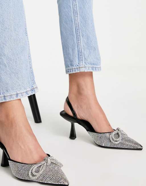 ASOS DESIGN Shadow embellished slingback mid heeled shoes in black
