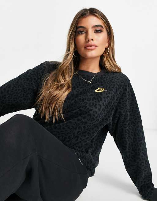 Felpa leopardata nike new arrivals, Nike Black Oversized Leopard Swoosh Crop Hoodie new arrivals