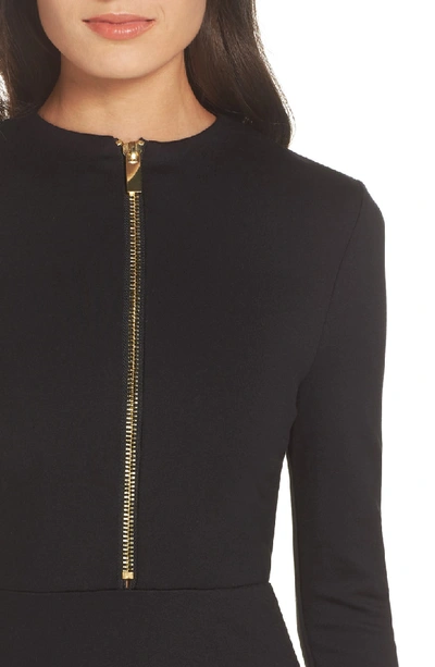 FRENCH CONNECTION Teresa Ponte Jersey Zip Dress in Black Gold