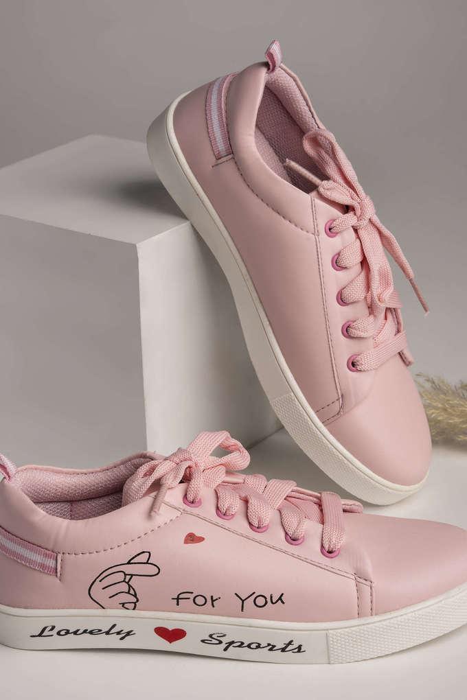 Buy SHOETOPIA Pink Synthetic Lace Up Girls Sneakers Shoppers