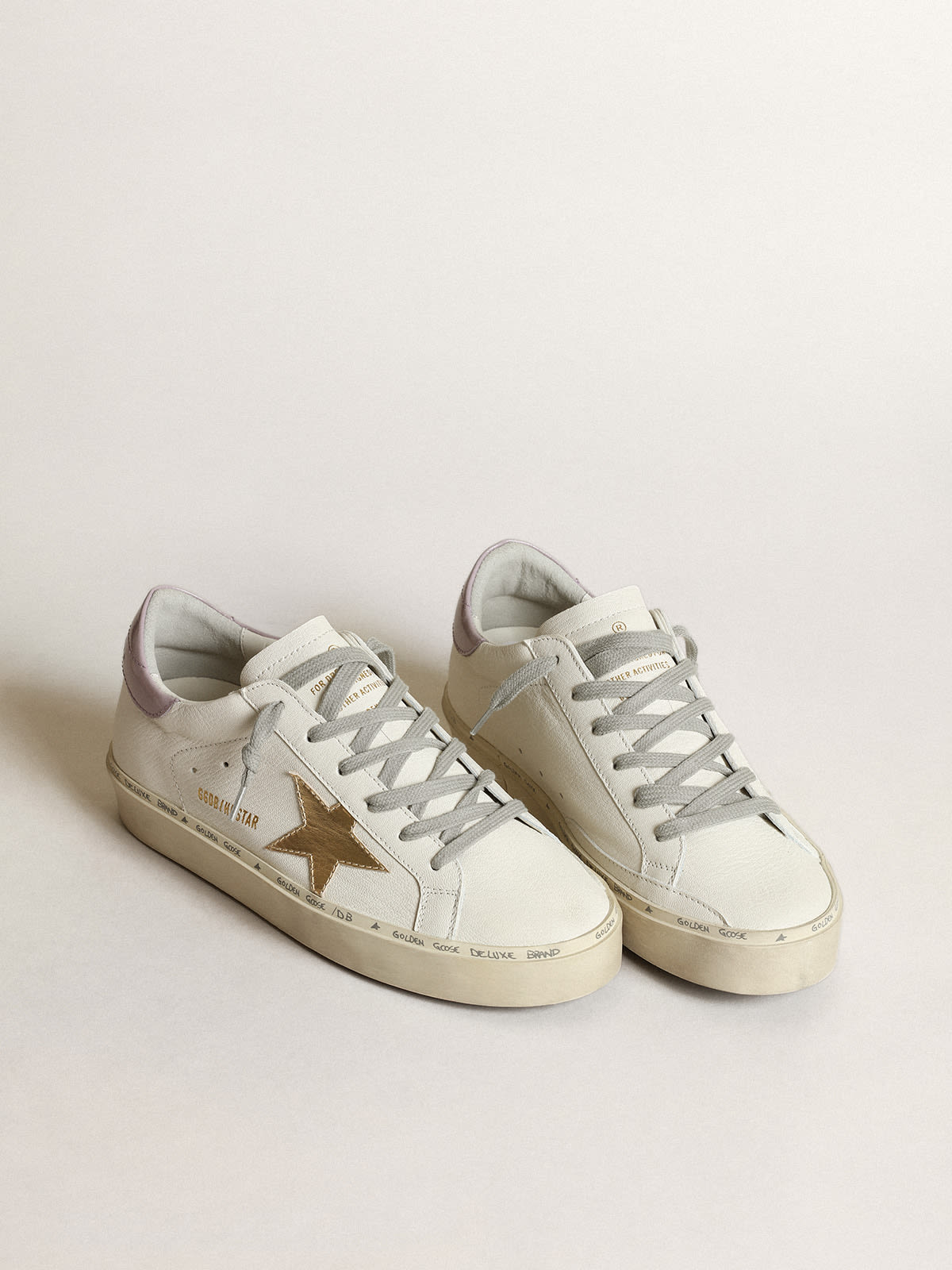 White Hi Star with a gold star and lilac naplak heel tab