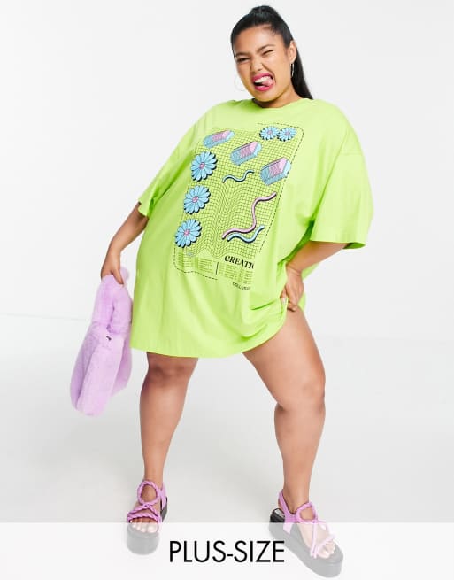 COLLUSION Plus exclusive flower graphic t shirt dress in lime