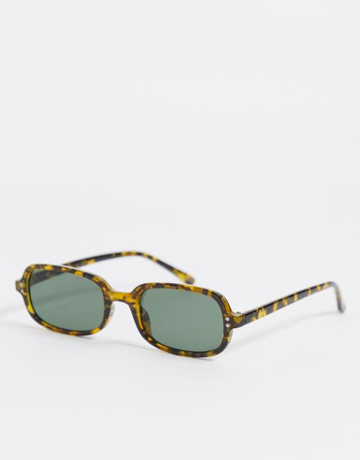 ASOS DESIGN square sunglasses in khaki tortoiseshell with green lens