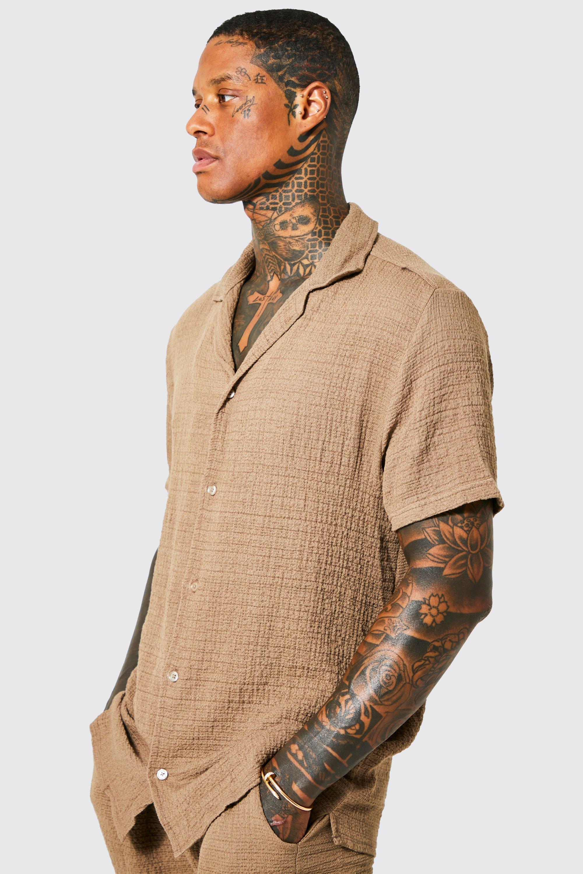 Conjunto texturizado de pantal n corto y camisa de manga corta
