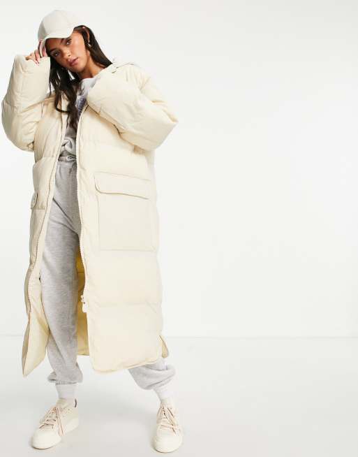 Jersey hooded puffer jacket new arrivals, Asos Design Petite Oversized Jersey Hooded Puffer Jacket In Cream new arrivals