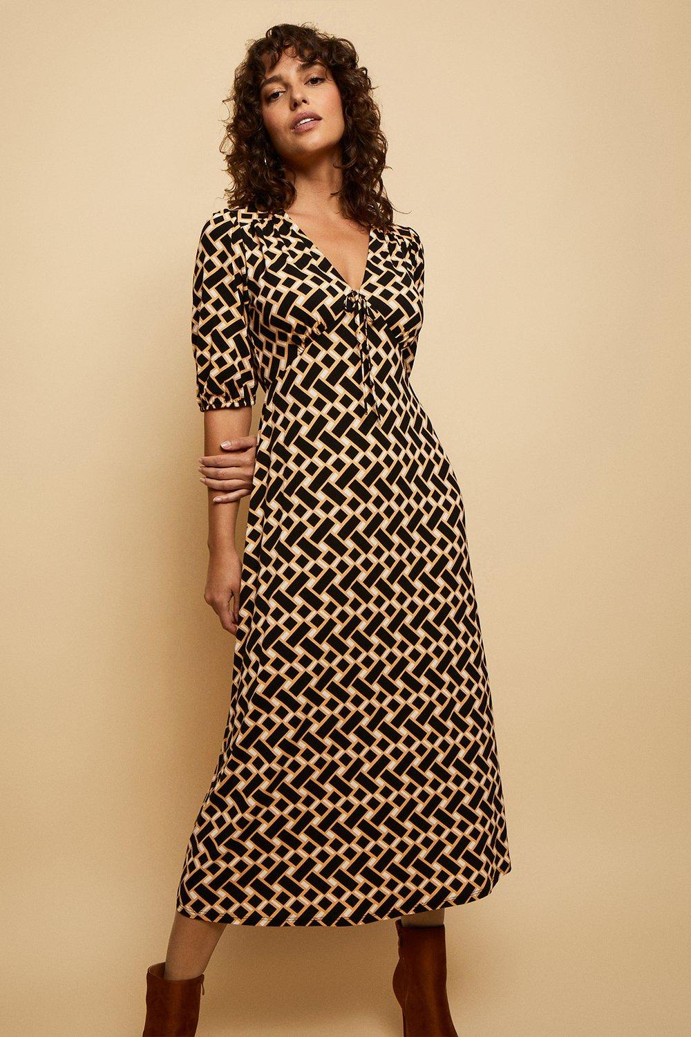 Dresses Geo Jersey V Neck Midi Dress Wallis