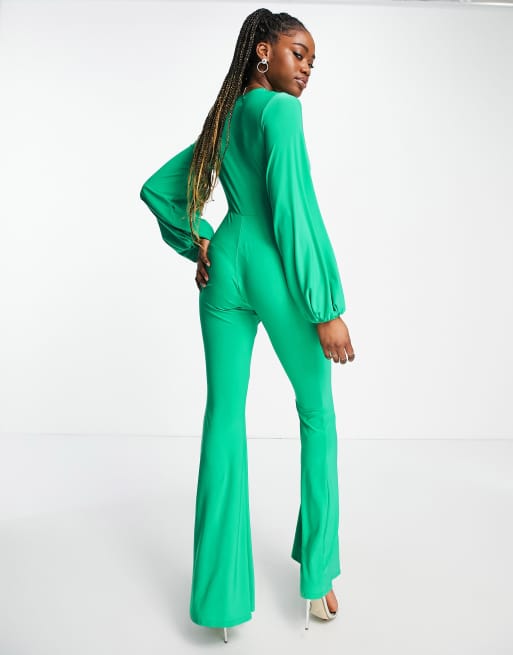ASOS DESIGN glam plunge tie front jumpsuit in slinky in green