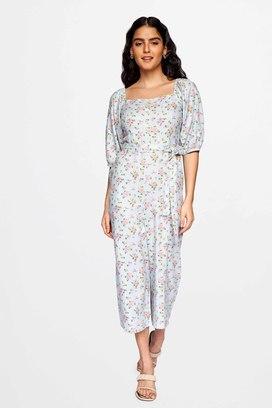 Buy AND Floral Three Quarter Sleeves Linen Womens Full Length
