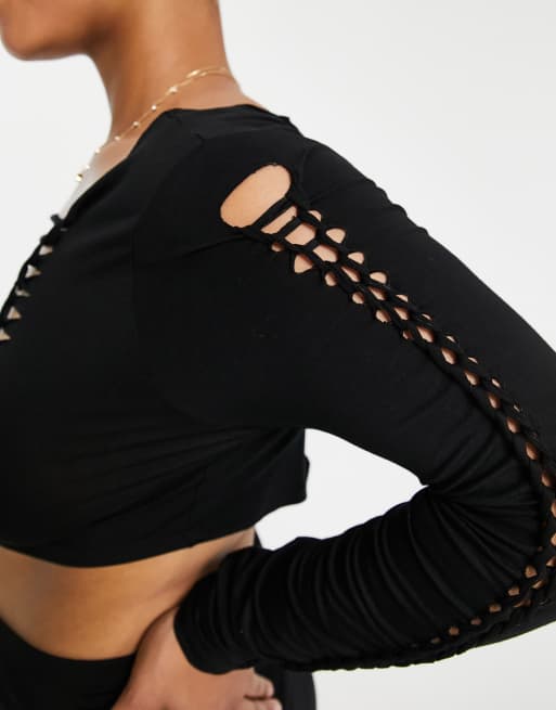 Ladder cutout sleeve top new arrivals, ASOS DESIGN Curve long sleeve ladder detail beach crop top in black new arrivals