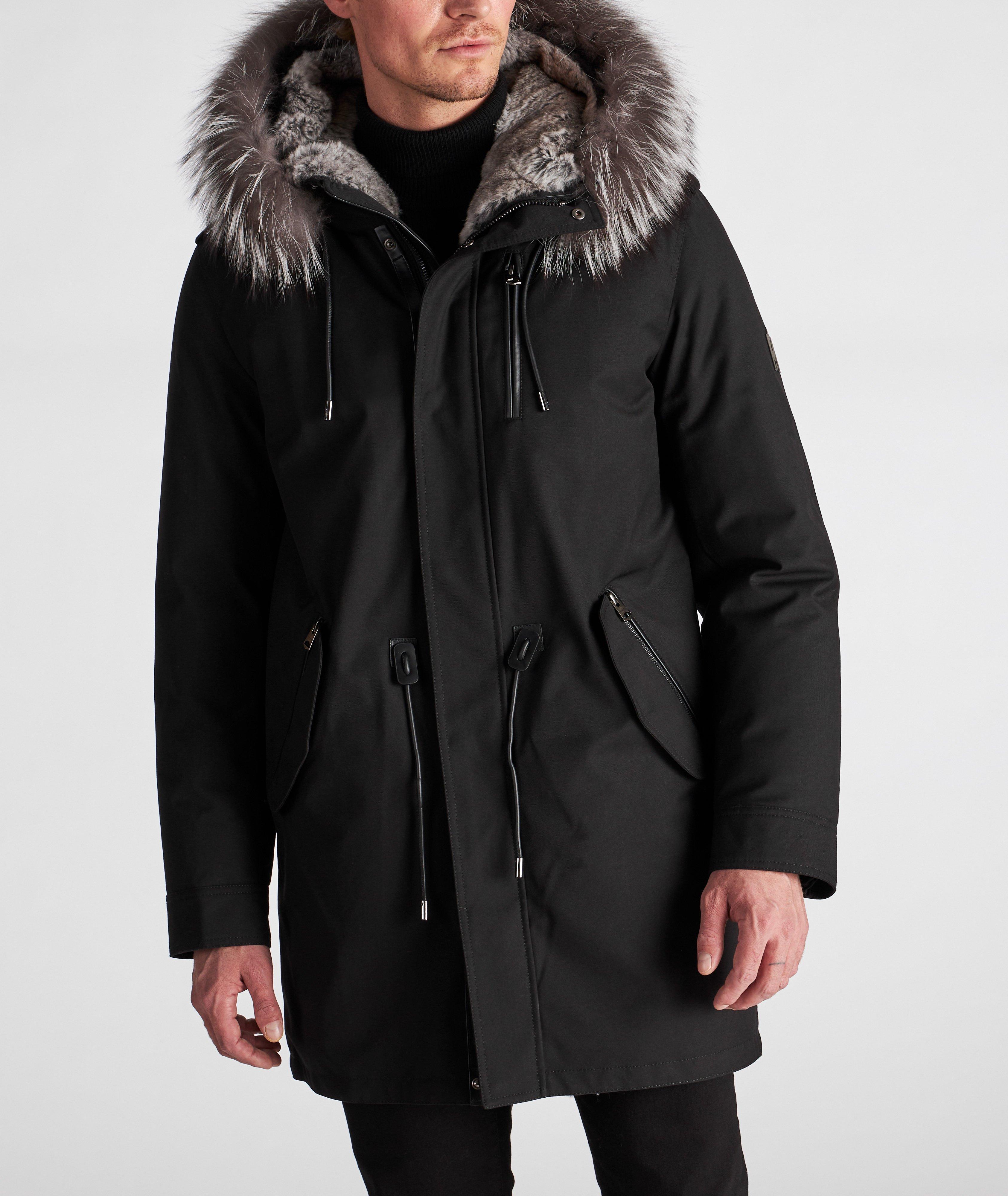 Moritz Rabbit fur lined twill parka with removable silver fox fur