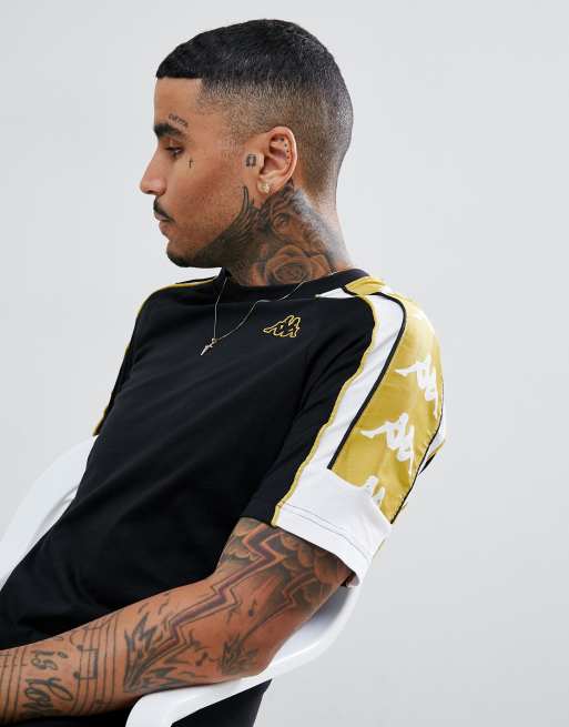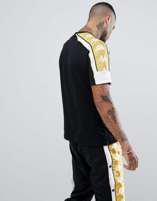 Magliette kappa oro new arrivals, Kappa T shirt avec large bande logo Noir et dor new arrivals