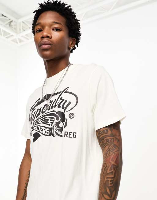 Superdry T shirt manches courtes motif r tro rock Cr me