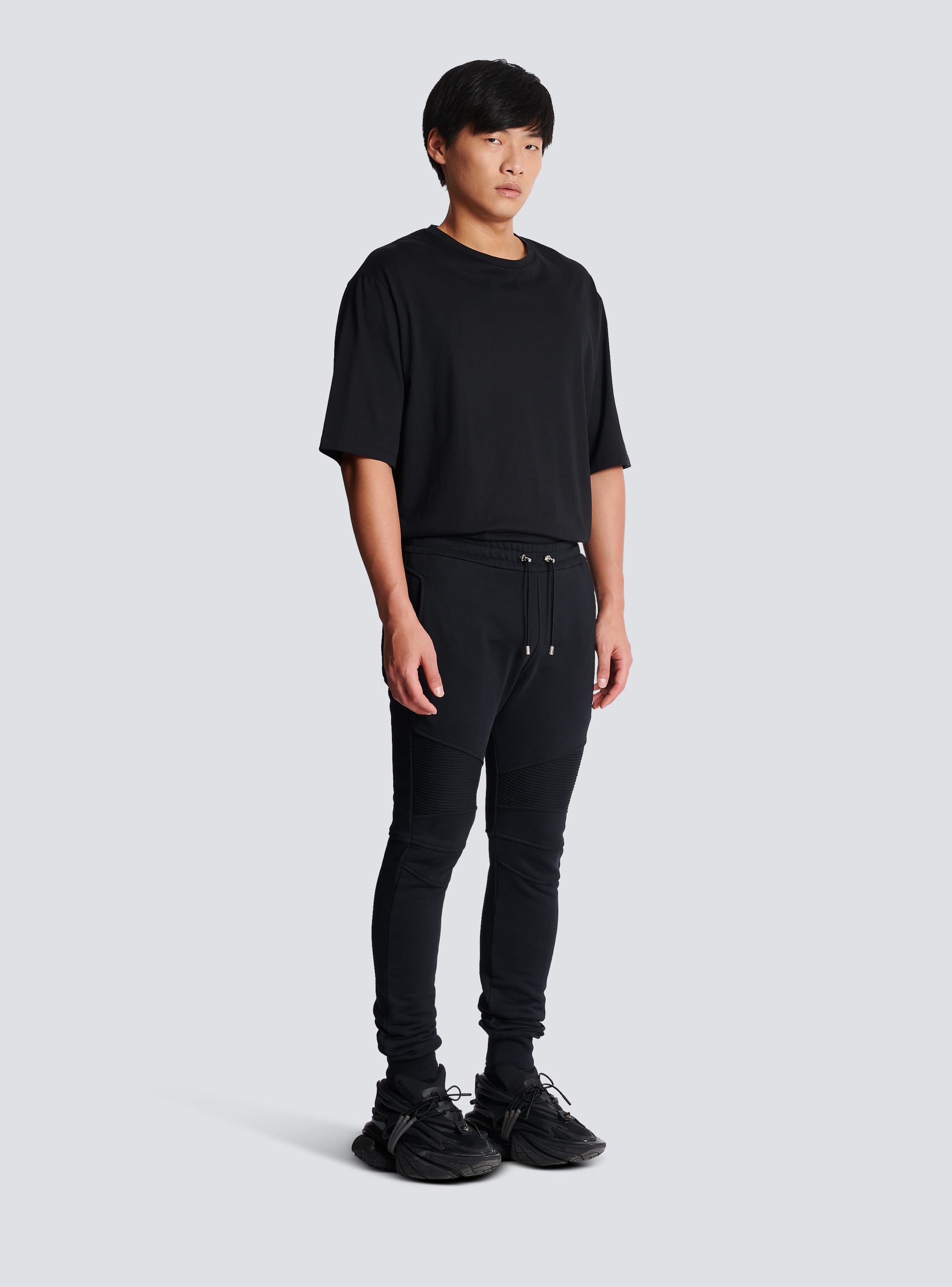 BALMAIN French Terry Leather Moto Jogger Pants Mens designer