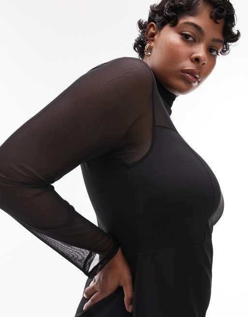 Topshop Curve mesh bra detail wide leg jumpsuit in black