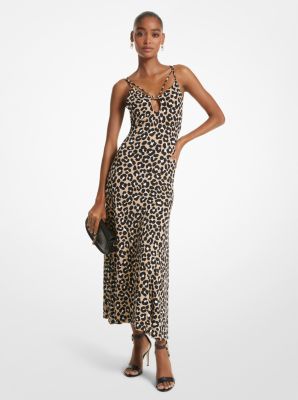 Leopard Print Matte Jersey Cutout Slip Dress Michael Kors
