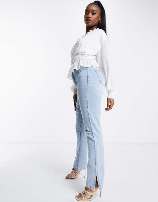 Missguided peplum top with ruffle neck in white ASOS