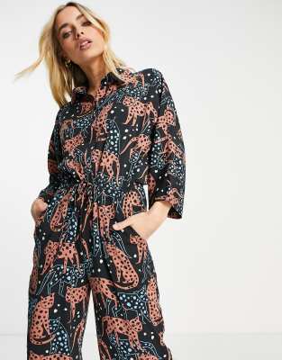 Monki jumpsuit leopard new arrivals, Monki polyester jumpsuit in black tiger print BLACK new arrivals