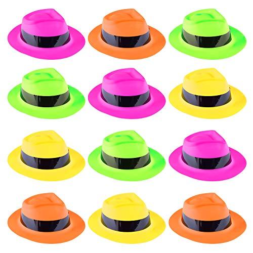 Super Z Outlet 12 Pack Neon Mafia Style Gangster Fedora Dress Hats
