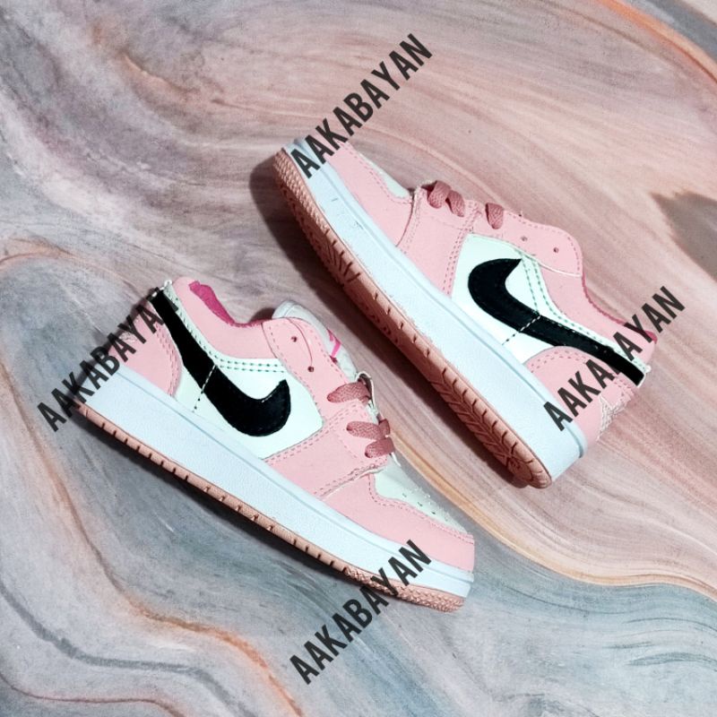T nis Infantil nike air jordan Sapatos 1 Baixo Rosa Preto Branco Menina Chick 26 35
