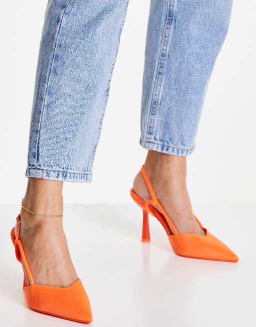 River Island slingback heeled pumps in orange ASOS
