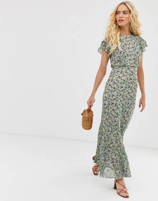 Vestido largo con volantes y estampado floral verde de Other Stories