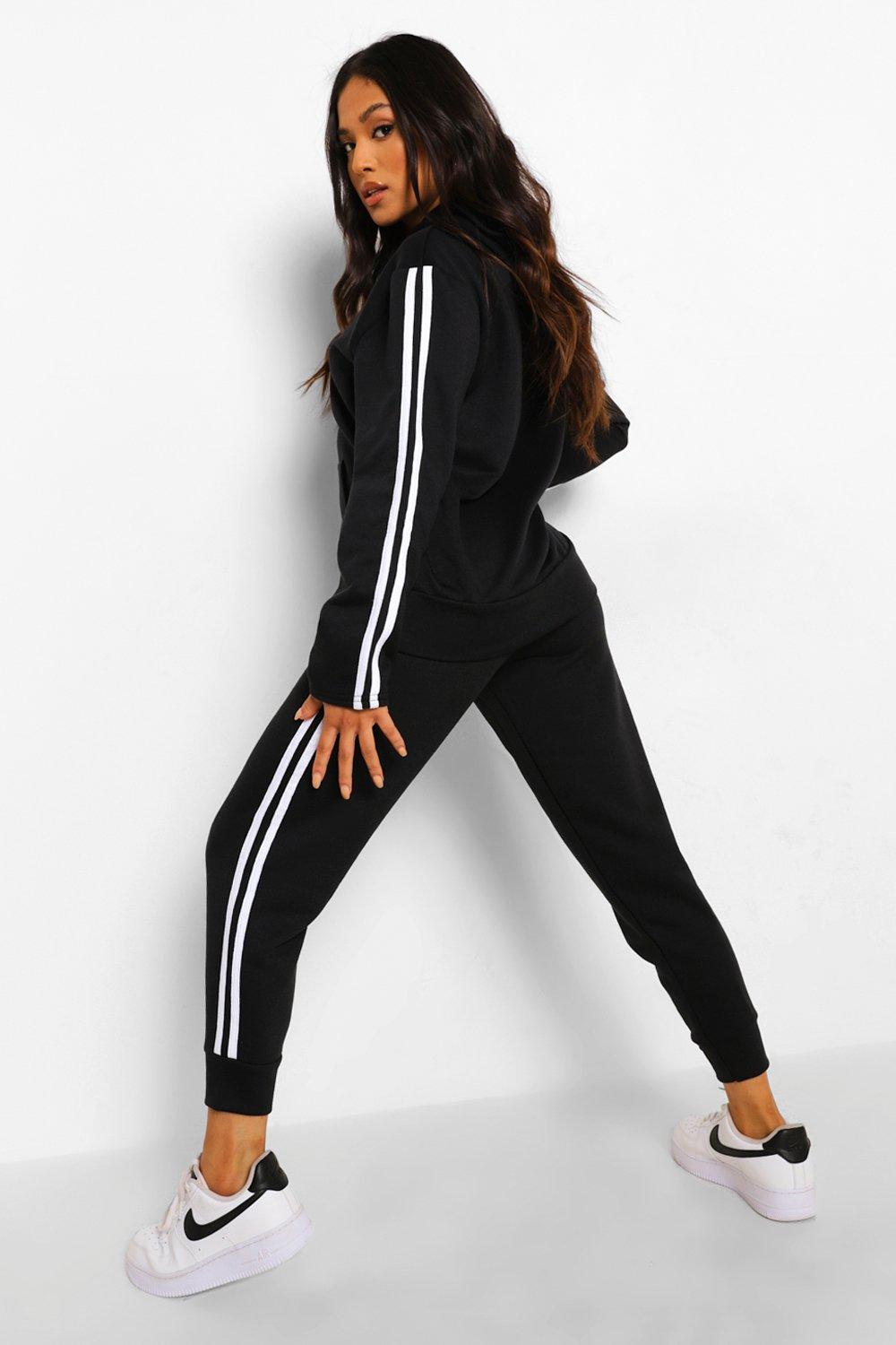 Petite Side Stripe Hoody And Jogger Tracksuit boohoo