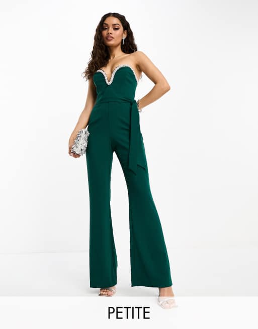 Ever New Petite embellished bandeau jumpsuit in emerald ASOS