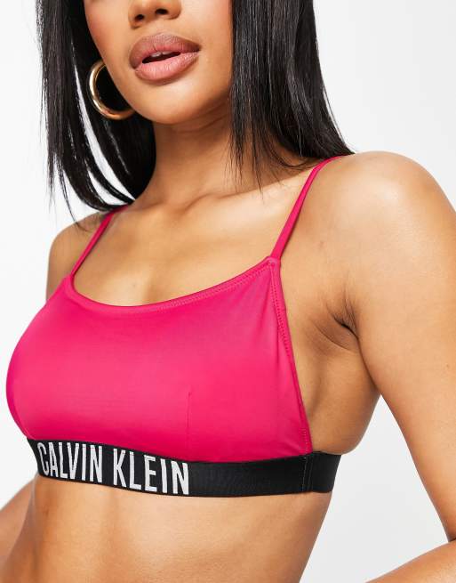 Calvin Klein logo bralette bikini top in pink ASOS