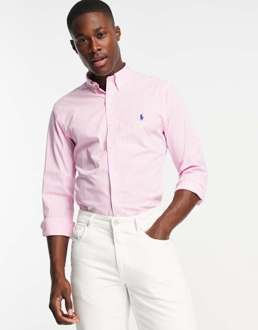 Polo Ralph Lauren slim fit stripe poplin shirt with pony logo in