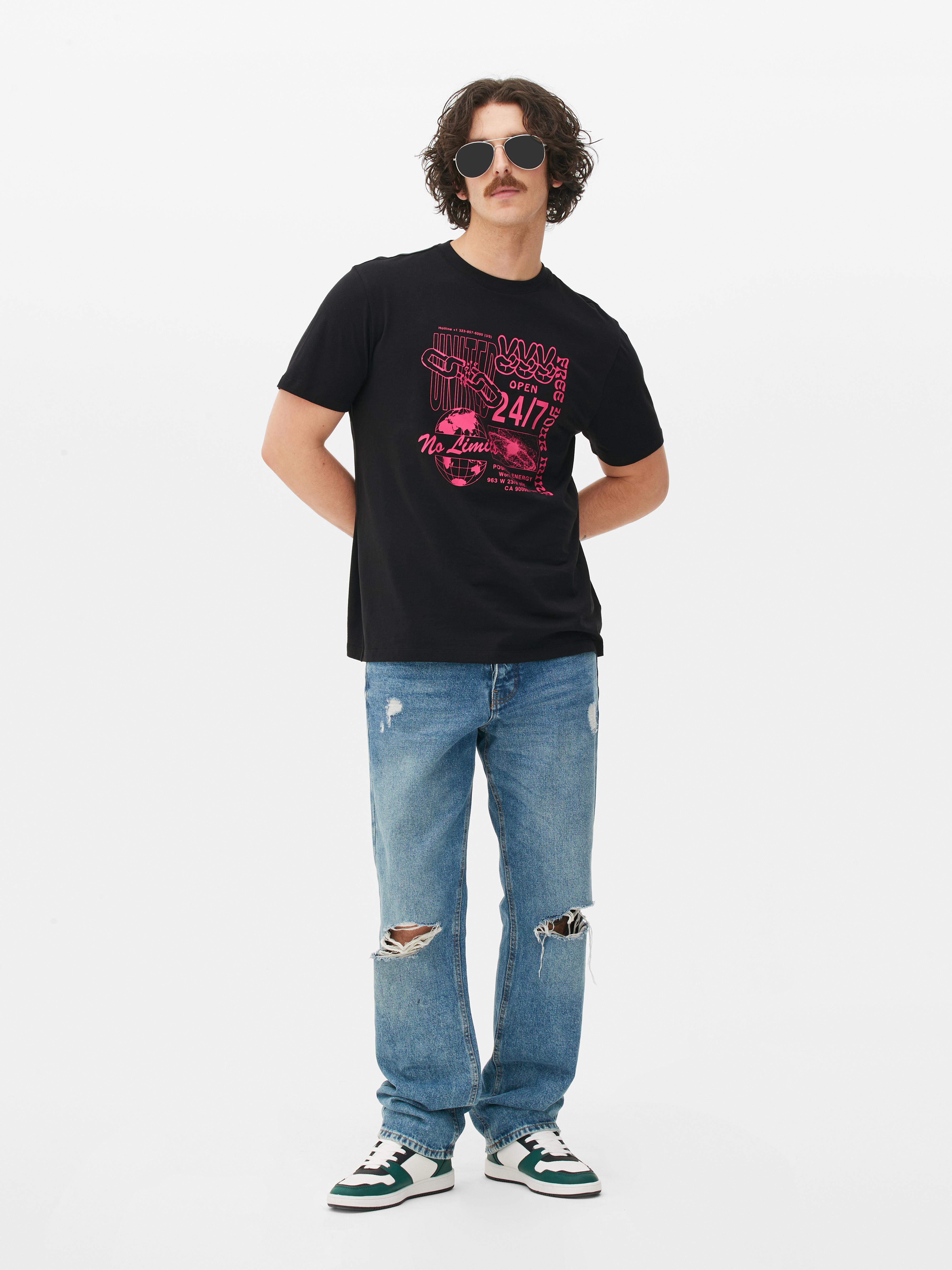 Primark magliette new arrivals, Mens Black Graphic Print Short Sleeve T shirt Primark new arrivals