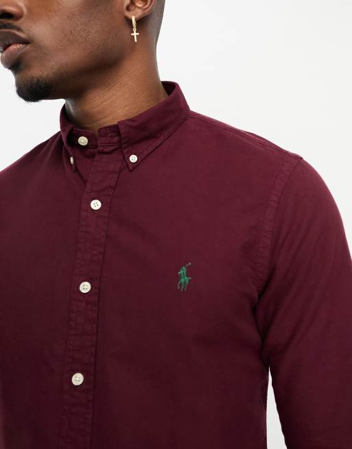 Polo Ralph Lauren icon logo slim fit garment dyed oxford shirt in burgundy