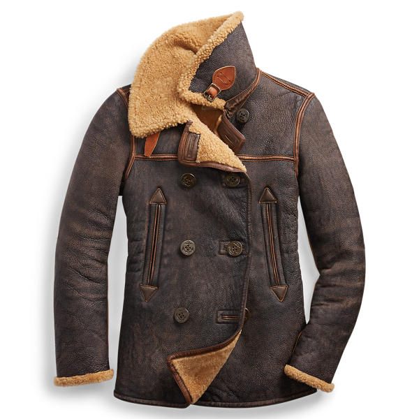 Ralph lauren shearling peacoat new arrivals, 2498 Polo Ralph Lauren Medium Shearling Peacoat Jacket Leather Brown Ranch Coat new arrivals