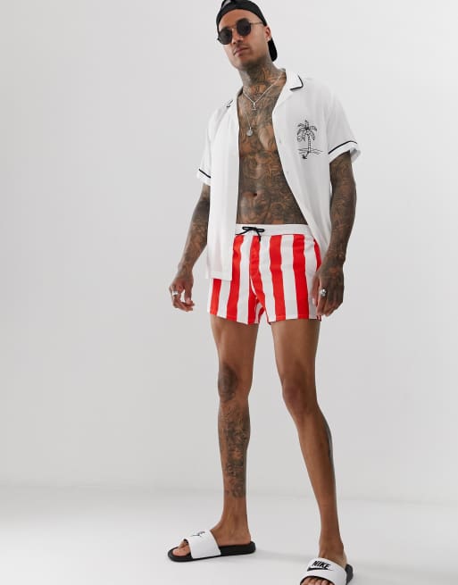 Red and white striped shorts mens new arrivals, Adam Levine Swim Trunk Shorts Mens Large L Mesh Brief Red White Striped Stripes eBay new arrivals