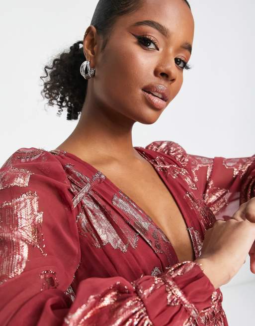 Red metallic dress new arrivals, ASOS DESIGN Petite metallic channel detail midi dress with puff new arrivals