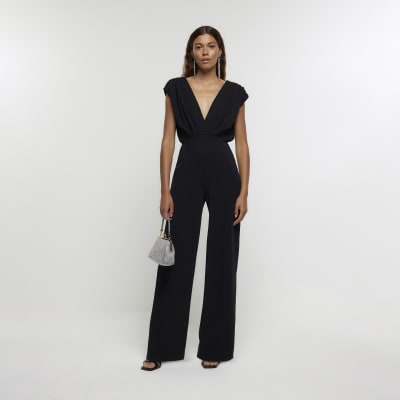 Black embellished wide leg jumpsuit