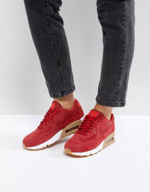 Nike Air Max 90 Red Suede Trainers With Gum Sole