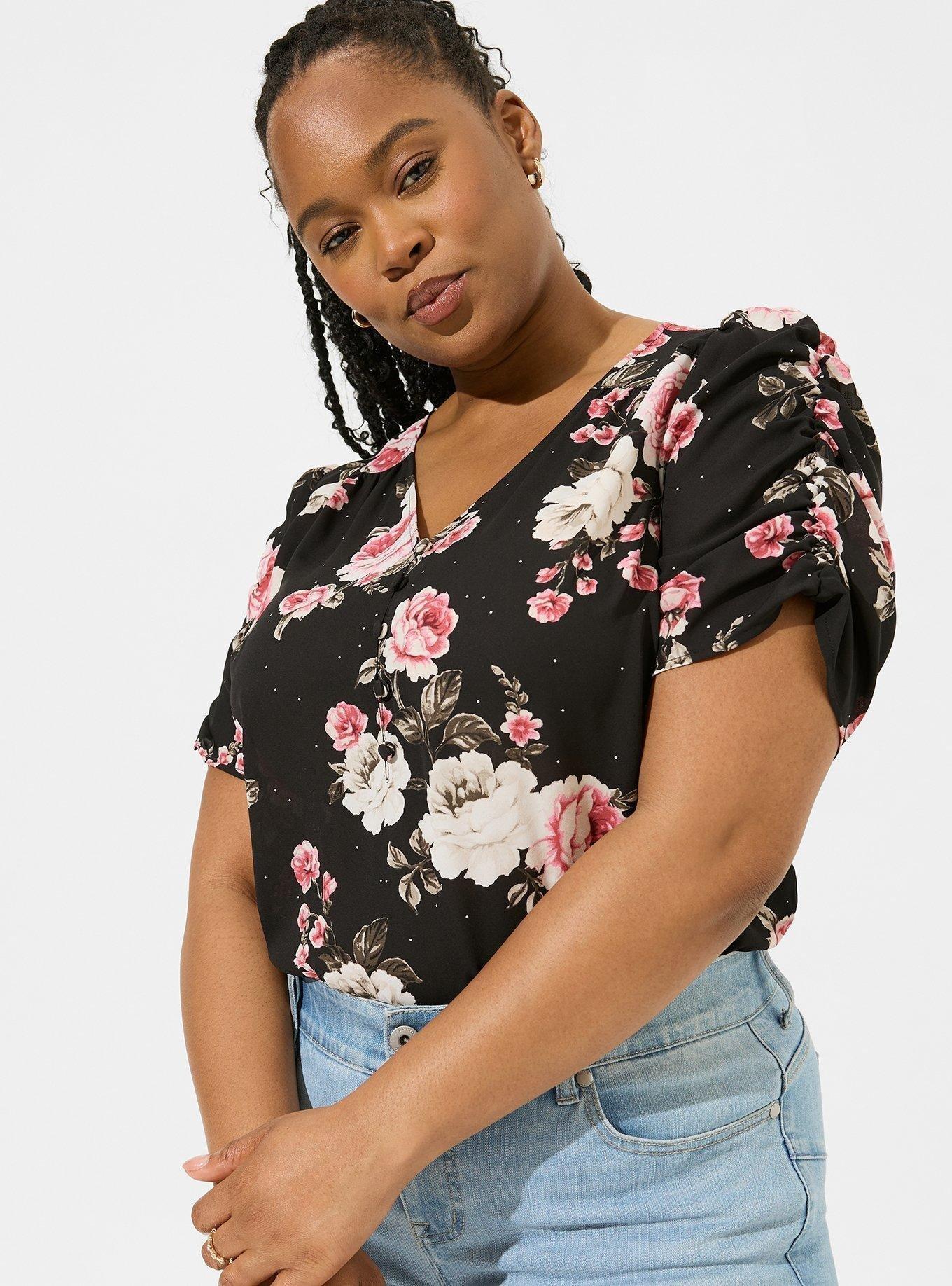 Ruched sleeve blouse new arrivals, Plus Size Harper Georgette V Neck Ruched Sleeve Blouse Torrid new arrivals