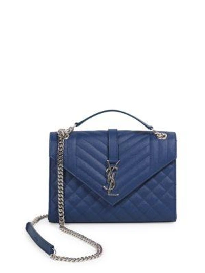 V Flap Monogram Ysl Medium Envelope Shoulder Bag W Silvertone Hardware In Denim Blue